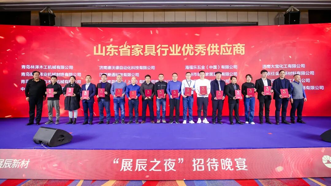 晚宴期间,山东省家具协会对促进山东家具产业发展作出重大贡献的个人及企业进行了表彰。展辰新材凭借高品质产品及优质服务荣获2022年度“山东省家具行业优秀供应商”荣誉称号。