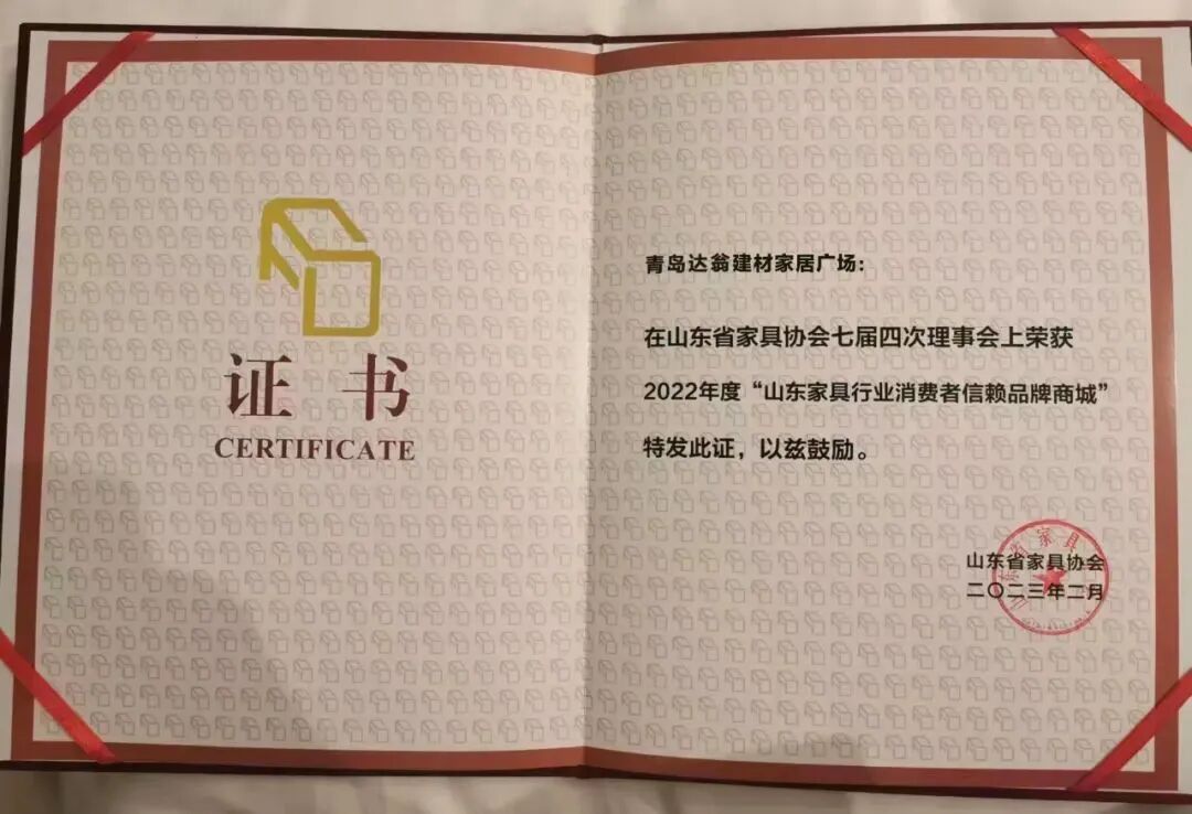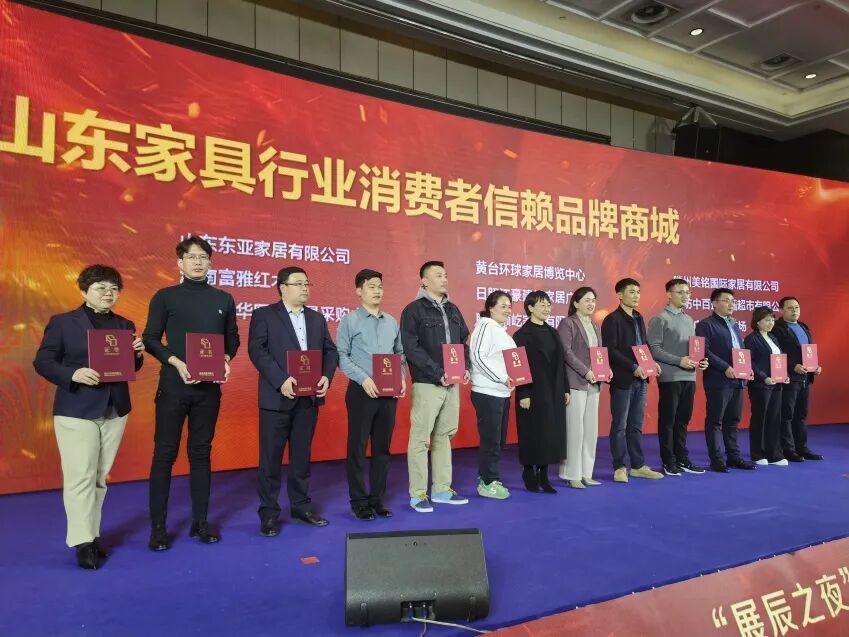 本次省家协年会上,青岛一木集团有限责任公司、青岛裕丰汉唐木业有限公司被评为山东省家具行业领军品牌,青岛达翁集团股份有限公司、青岛海博家居有限公司被评为山东省家具行业消费者信赖品牌商城。达翁集团总裁戚振香代表达翁家居登台领奖。青岛华谊优品智能家具有限公司、青岛良木集团有限公司被评为山东省家具行业创新企业,青岛展辰新材料有限公司、百隆家具五金(上海)有限公司青岛分公司、青岛少海研磨科技有限公司被评为优秀供应商。