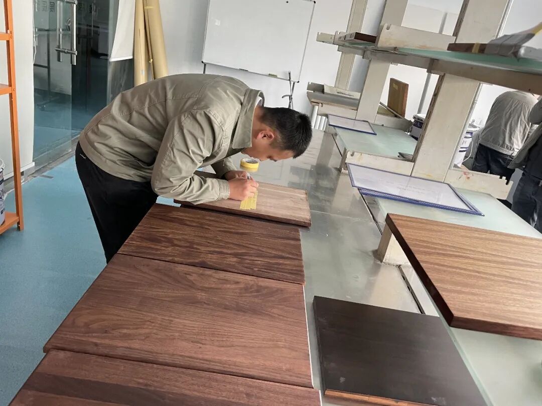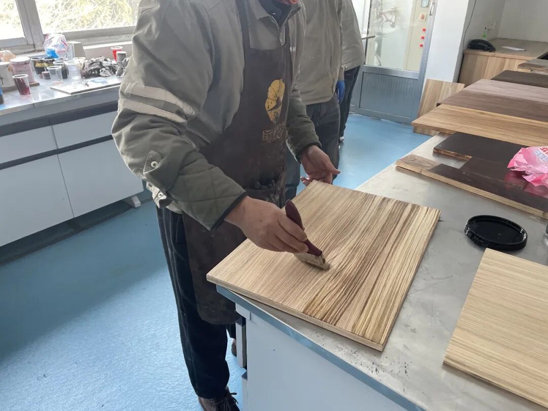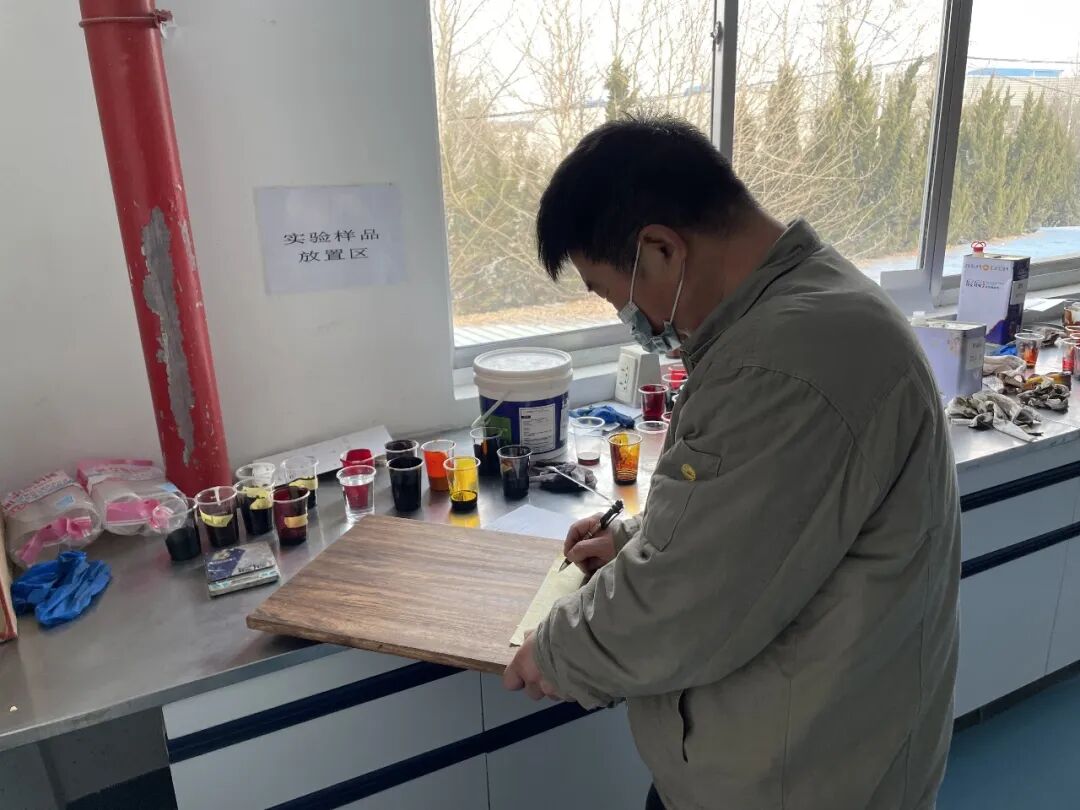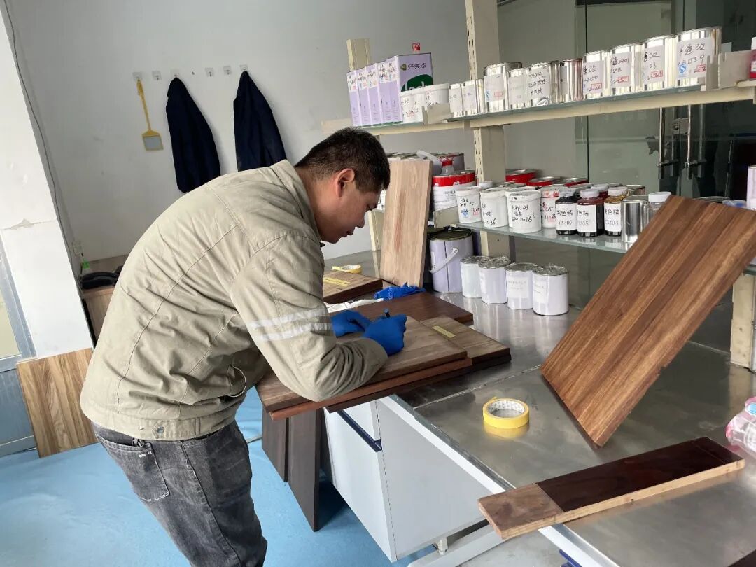 技术应用精英们,在王华英经理的指导下,从白坯选材到打磨,从颜色到底漆、面漆等工艺实操,从实木高透到轻奢半透工艺的效果制作,让大家尽情发挥优势长处,弥补短板。在学习与操作中每个人都干劲十足,收获满满。