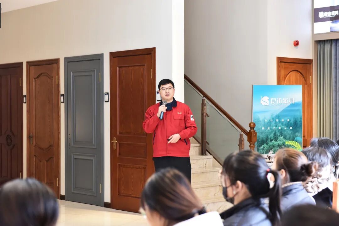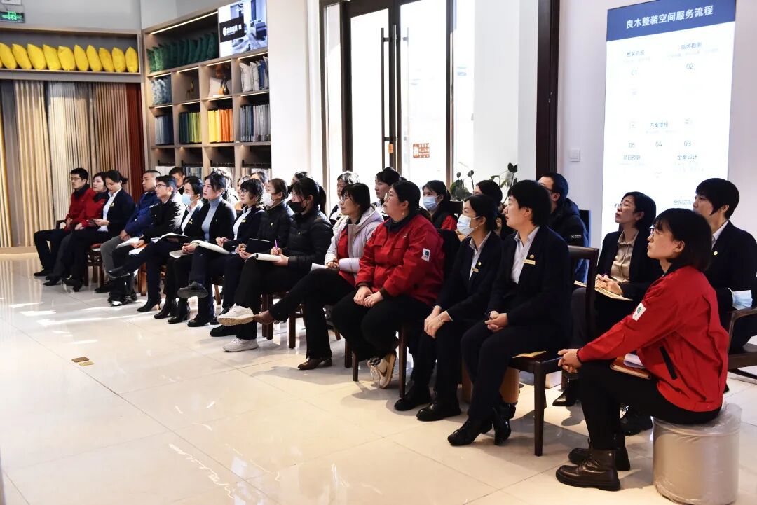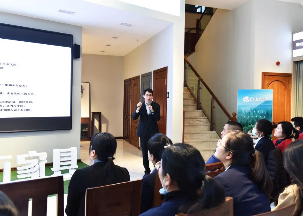 随后,由王鹏经理针对良木整装业务作了热情洋溢、鼓舞士气的讲话:受大环境影响,我们度过了极不平凡的一年,面对新形势,良木积极迎难而上创新发展,推出良木家具·整装空间,这是大势所趋,也是时代导向。以“产品革新、服务革新、业务革新”都是未来发展的内驱,组织变革、人才体系建设、产品结构优化、运营制度建设等都是良木重塑内驱力的积极动作,王鹏表示,面对未来,良木人要敢于拥抱变化,奋力拼搏,抓住一切向上生长的机会,成为时势之杰。