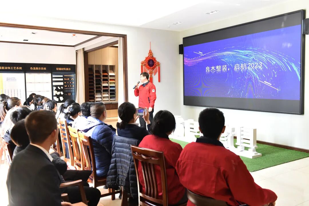 大会伊始,胡总首先代表公司,向一年来辛勤奋斗在一线的同事表示衷心的感谢!并向大家致以新春的问候和美好的祝愿。同时明确了我们的发展方向:未来,良木家具将以扎实的实木功底赋能整装定制,将进一步加快市场布局优化和业务结构调整,始终将“以客户为中心”放在首位,强化供应链能力,重塑流程管理体系,加强各方面的精细化管理,力促各项工作再上新台阶。