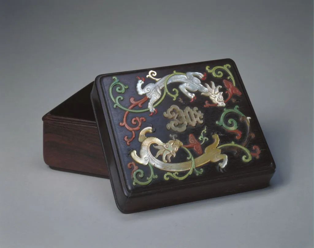 清 紫檀木百宝嵌双螭纹盒 故宫博物院藏