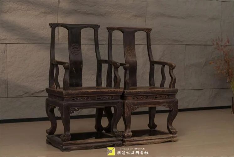 清代 榆木髹漆三弯腿带托泥官帽椅 研习社藏品