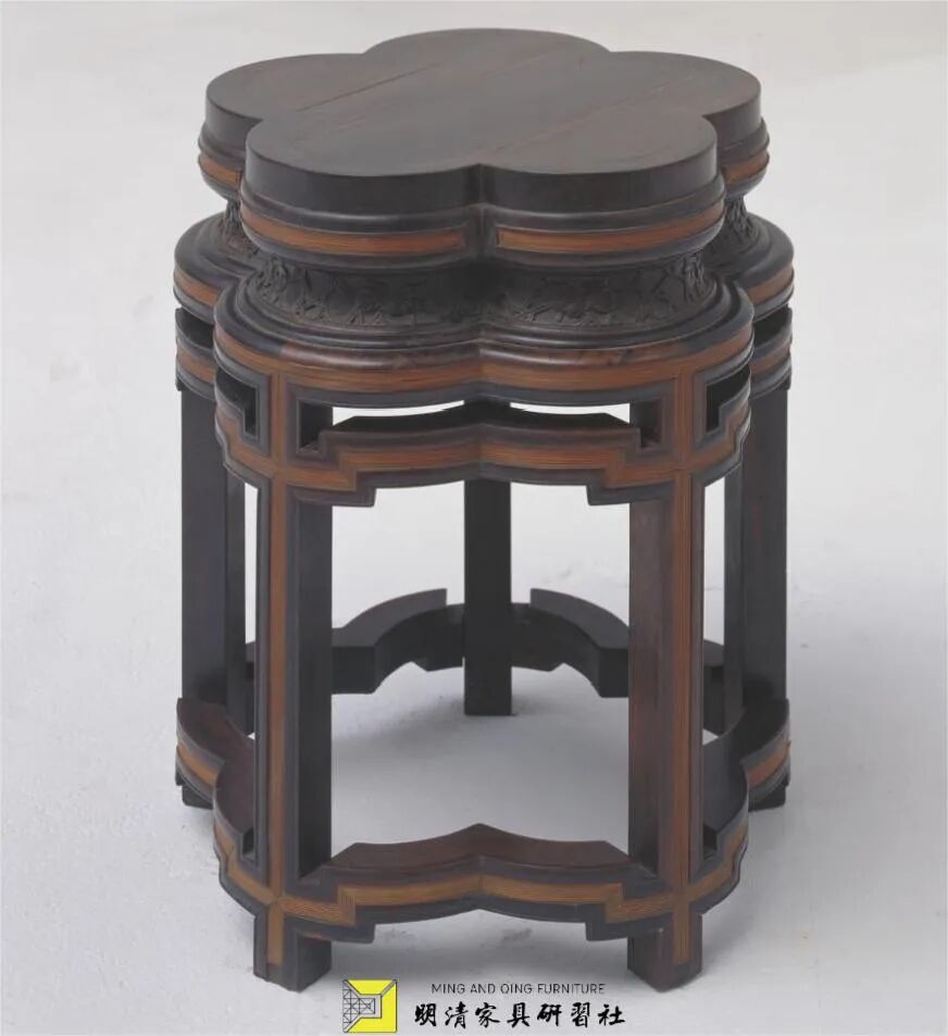 清中期 紫檀木嵌竹丝梅花式凳 故宫博物院藏