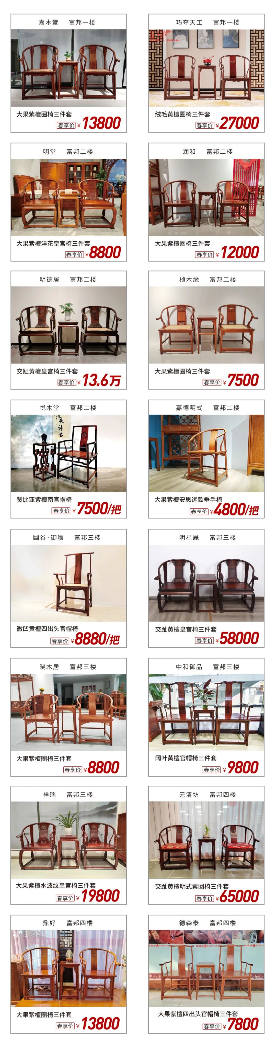 买真红木到富邦!近二十个红木品牌工厂直营店联合推出红木椅春享价,真材实料、经典款式任您选!