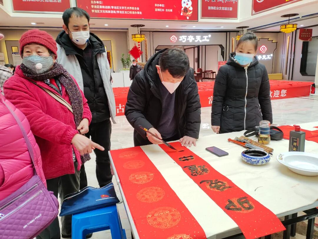 李沧区文联主席李坚、李沧区文旅局副局长张吉余、沧口街道党工委委员刘永祥等领导来到现场和市民一起参加活动,富邦红木·古玩城董事长张云山、总经理孙晓燕陪同。