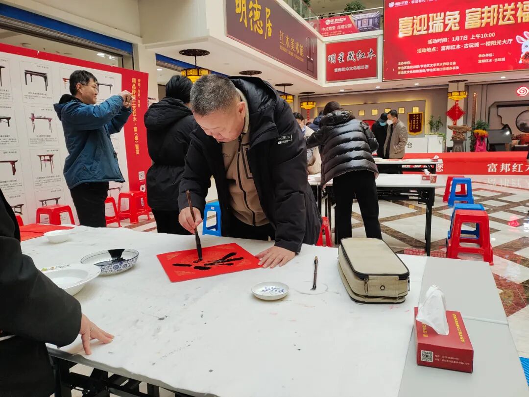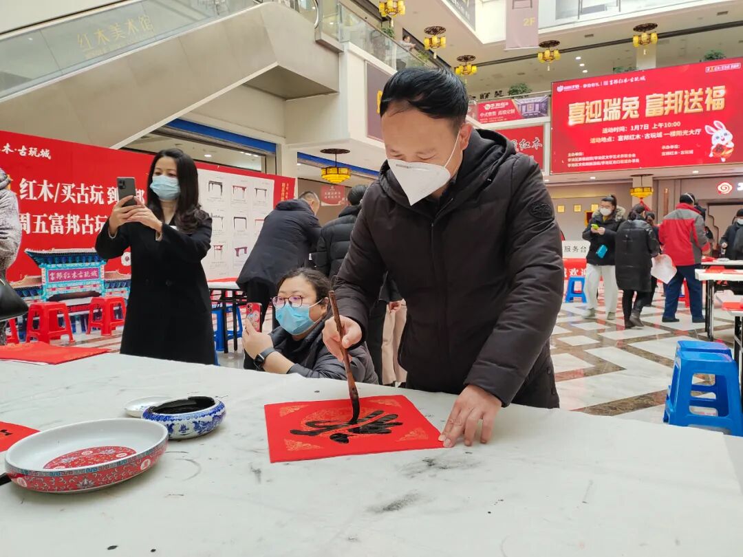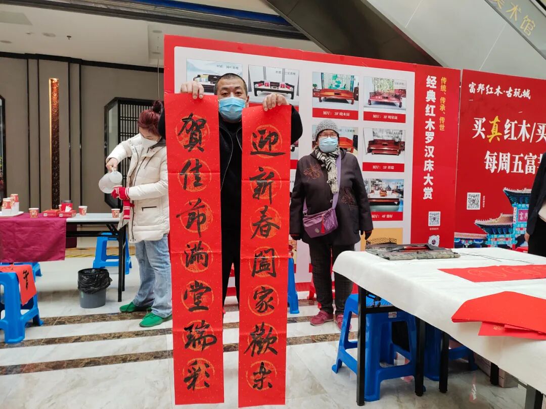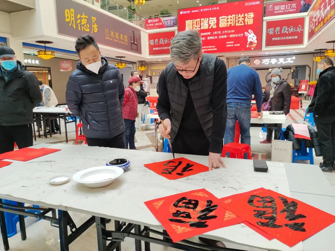 新春佳节将至,为营造祥和、欢乐、喜庆的节日氛围,回馈广大市民一年来对富邦的关注和支持,1月7日上午,由李沧区委统战部、李沧区文联、李沧区文旅局、沧口街道办事处联合主办,富邦红木·古玩城承办的“喜迎瑞兔 富邦送福”公益活动今天在富邦红木·古玩城举行。