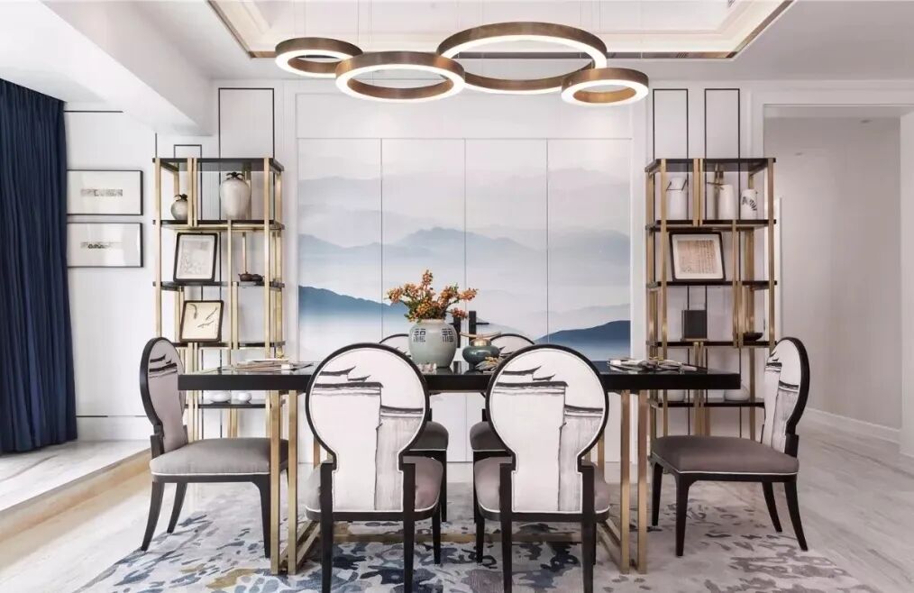 新中式风格中常把山水、花鸟等元素画运用在家居宅第的布局和陈设中,不仅能提升空间格调,还能体现居者的生活与文化品位。