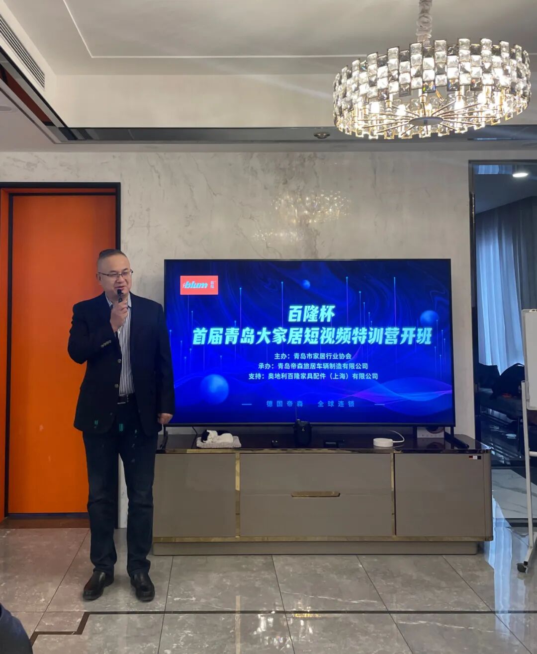 奥地利百隆青岛公司总经理肖锋刚一直关心行业的发展,致力于推动青岛大家居产业的转型升级和创新发展,基于共同的目标三方共同决定举办首届青岛大家居短视频特训营。徐秘书长对承办方帝森集团和支持方奥地利百隆表示衷心的感谢,希望通过本次特训营的举办,能够充分发挥协会的平台优势,和参加培训的企业一起整合优势资源、彼此赋能、融合共生、共创未来。