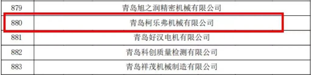 2022年12月14日,高新技术企业认定管理工作网发布了《关于对青岛市认定机构2022年认定的第一批高新技术企业进行备案公示的通知》,青岛柯乐弗机械有限公司荣幸入选,成功跻身青岛市高新技术企业行列!