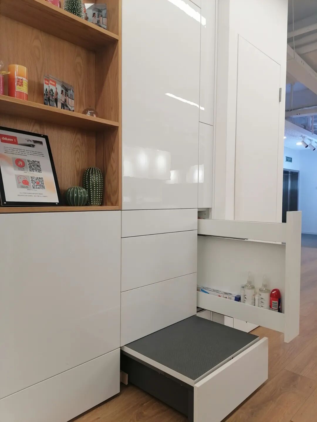百隆展厅还有传统柜式储物和抽屉式储物的对比展示,让徐秘书长亲自感受了储物空间的完美展示和存取便利性。