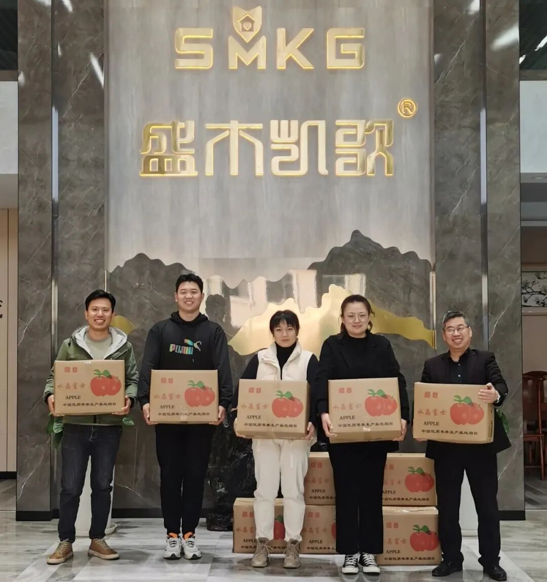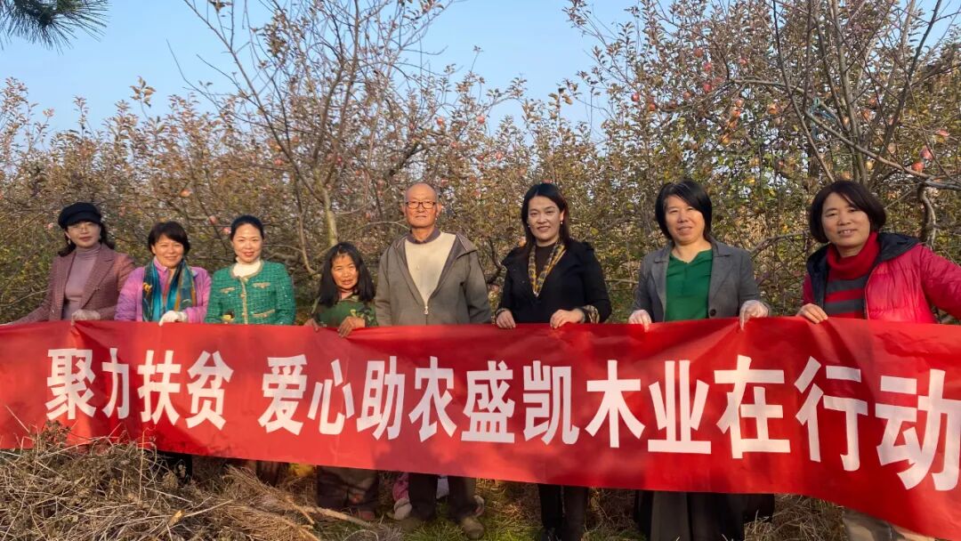 盛凯木业组织公司员工前期进行实地调研,深入了解情况,后来又发动公司所属商会会员购买果农苹果,解除了果农的后顾之忧。