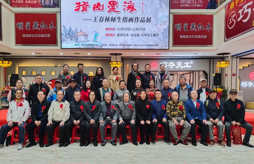 11月19日上午10点30分,由青岛市收藏家协会主办,富邦红木·古玩城、巧夺天工红木、青岛大明指画研究院承办的“指山墨海——王春林师生指画作品展”在富邦红木·古玩城成功开幕!