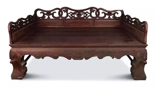 明代的罗汉床有束腰和无束腰两种:有束腰多为鼓腿彭牙大挖内翻马蹄,无束腰则为直腿式。罗汉床的差别主要表现在围子的做法上,最简捷朴质的只有三块光素的整板,正中一块稍高,或有的整板加一些浮雕花纹;另一种是围子四周有边框,中部用短材攒接出各种各样的花纹。