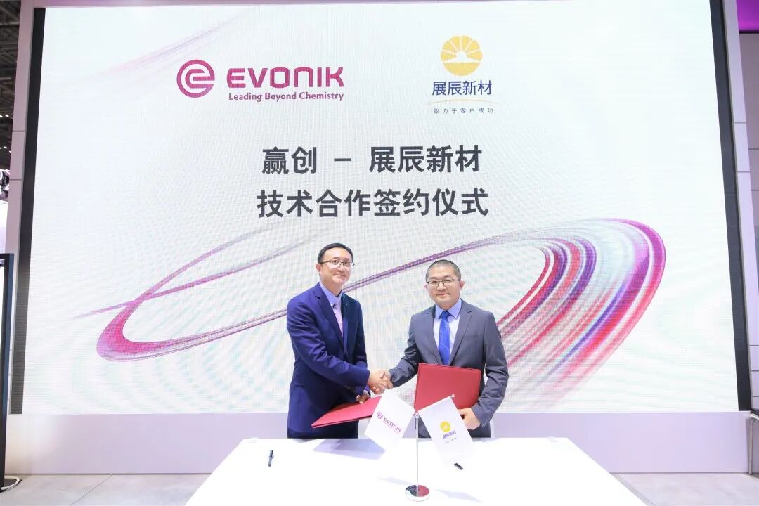 11月7日,第五届中国国际进口博览会上,展辰新材与赢创特种化学签署技术合作备忘录,双方将着重在水性涂料和辐射固化涂料体系方面进一步展开合作和研究。