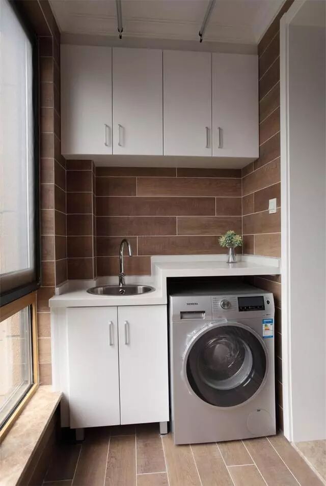打一个收纳柜,可以放洗衣机,也能喝茶休息