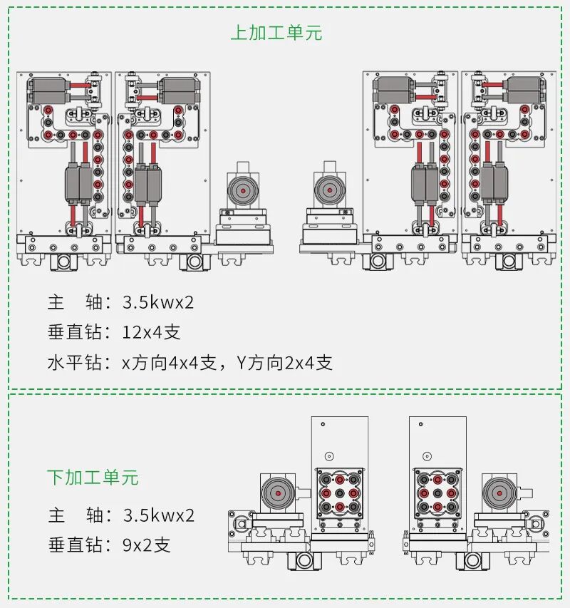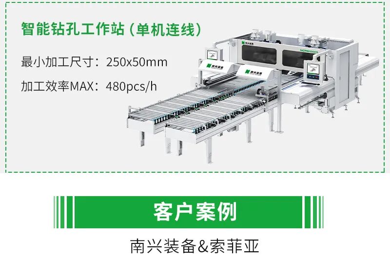 双工位同时加工不同工艺板件,加工效率MAX480pcs/h。