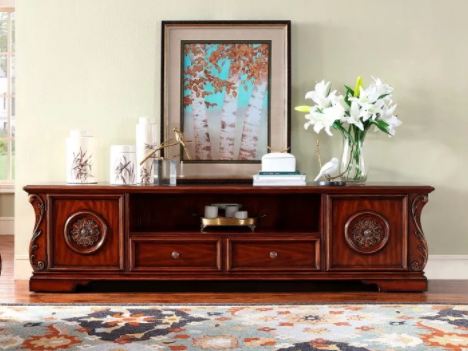 装饰花和图案是构成美式家具重要的装饰手法,是在吸收各国精华后加以改进的结果,其题材来源于宗教、神话传说以及大自然的美的欣赏,浓浓的寓意带有深层次的文化内涵:在家具的视觉中心点采用浮雕细工和木雕工艺,根据家具的风格、用途、类型、习俗等,采用适当的装饰,突显美式家具整体的层次感,营造了其艺术化风格的审美情趣。