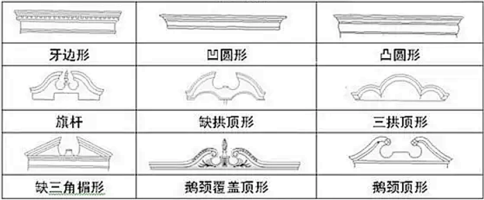 美式家具中的顶饰主要来自西方建筑中的经典造型:
