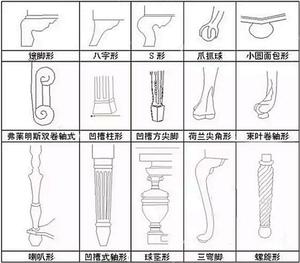 现代美式家具脚型和柱型吸收各国的风格并加以改进的结果,常见的有: