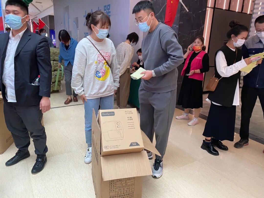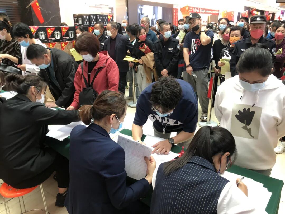 最具人气的满额赠活动在下午2点开始,顾客们早早就来到了现场,按照商场的防疫要求戴好口罩且有秩序地排起了长队,活动现场人潮涌动,大家都摩拳擦掌等待着领取各自的礼品。