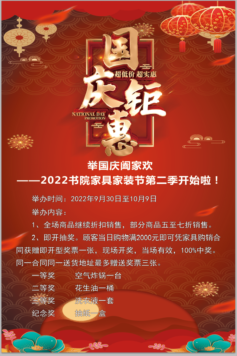 【会员新闻】书院家具城——喜迎国庆 好礼相赠