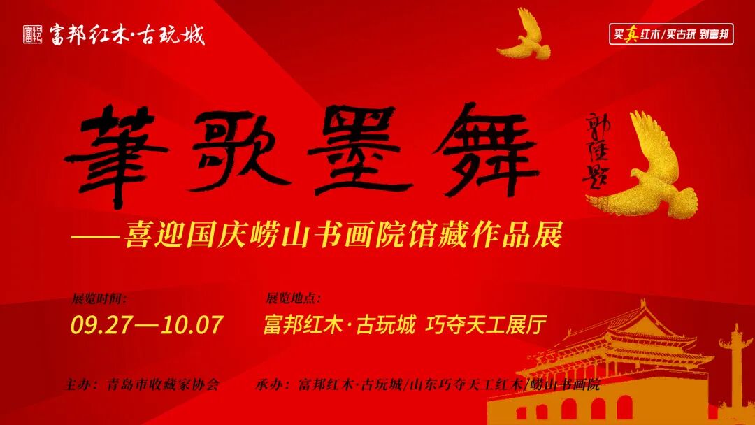 9月27日上午,由青岛市收藏家协会主办,富邦红木·古玩城、山东巧夺天工红木、崂山书画院承办的“笔歌墨舞 ——喜迎国庆崂山书画院馆藏作品展”开幕式在我协会副会长单位——富邦红木·古玩城隆重举行!