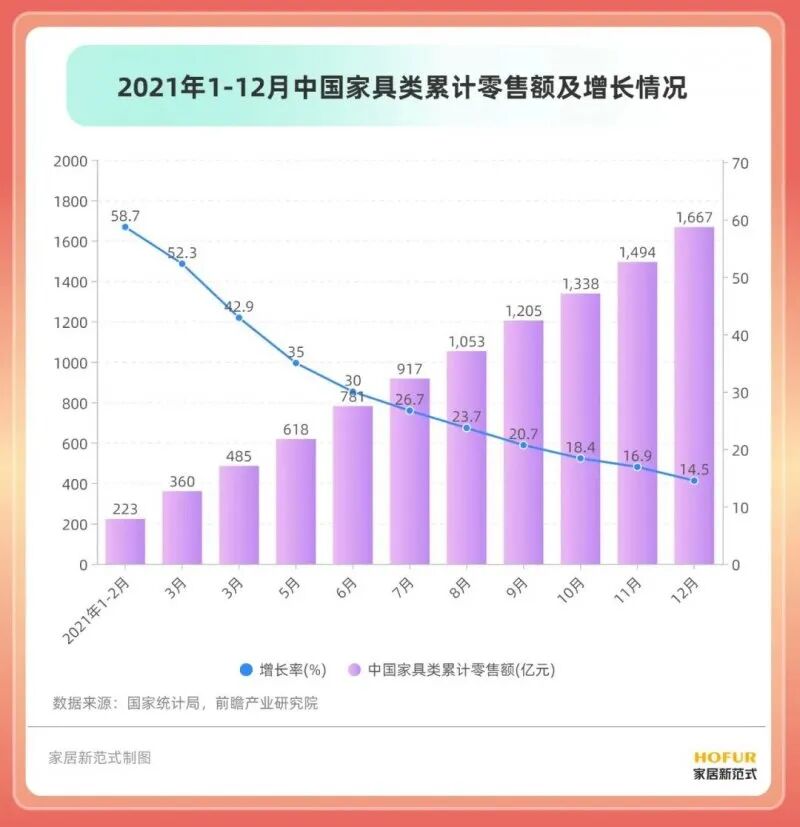一直以来,家居产业均有着规模体量大、消费带动强和产业覆盖广等特点,据国家统计局数据显示,去年国内家具累计销售额达到了1667亿元,再加上共738亿美元的家具及其零件出口总额,去年国内家具行业创造的产值接近7000亿元。