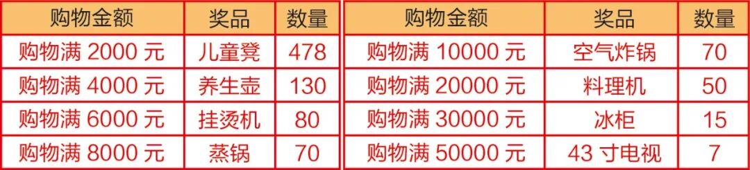 *礼品奖品以实物为主活动详情见店内海报或单页