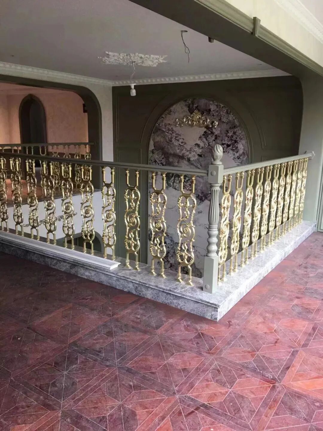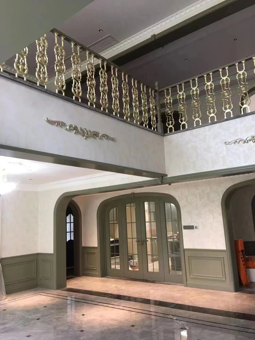木门木饰面采用弧形和拱形为造型,为了延伸视觉高度,整体弧形一体完成,无连接点,造型高挑不失唯美,配上仿古实木拼花地板和大马士革花壁布,空间满满的高端居住感扑面而来,简约中不失奢华,自然中浸透着典雅,这又是一份美式高定家居的扛鼎之作。