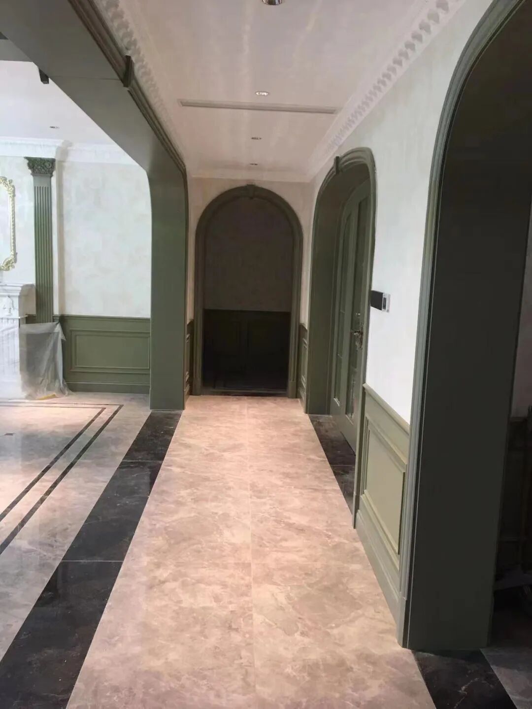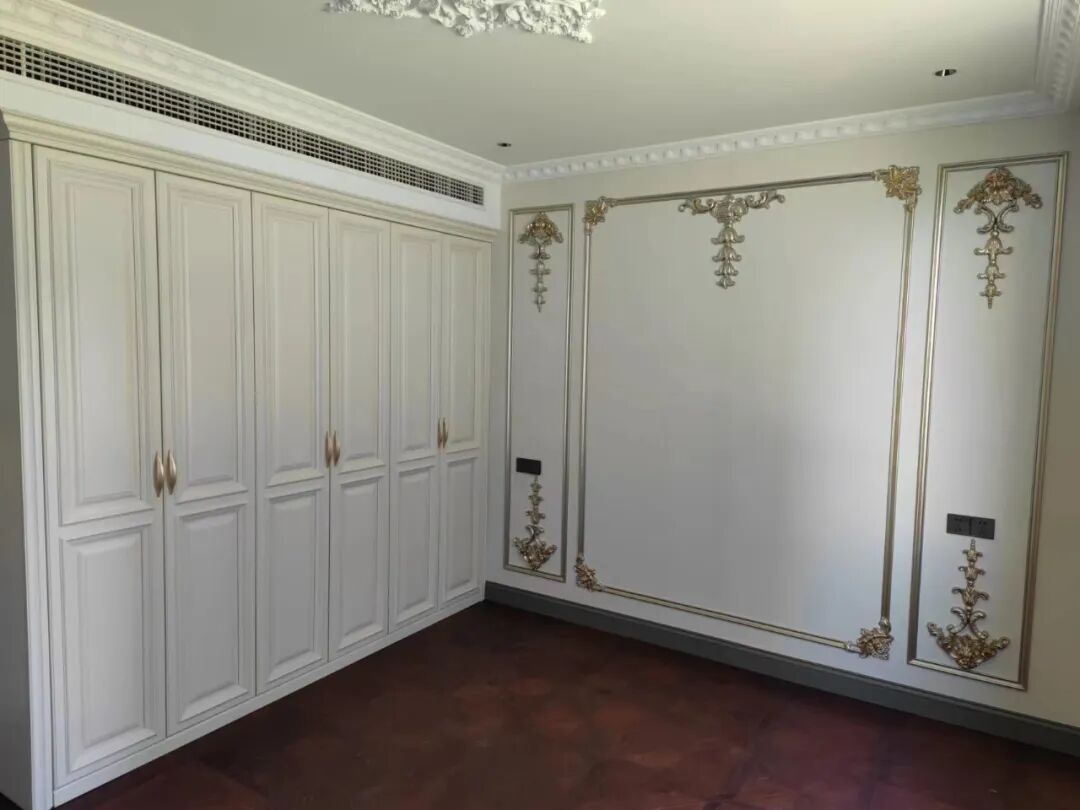 日前,由智木良品(青岛)有限公司承接的江北水乡聊城市茌平县名仕官邸项目顺利完工交付。 该项目为高端商品住宅,智木良品主要承接了室内高端木门、墙板、柜类等高定木艺品。 该项目客餐厅以自然大气的美式装修风格为主调,色彩以崇尚自然的抹茶绿为主色,清爽利落的线条配饰加上描金黑边金属造型,使得整个空间简约时尚且充满着的高雅精致的品味。卧室和衣帽间作为主人的私密空间,主要以功能性和实用舒适为考虑的重点,采用温馨柔软的成套布艺来装点,在软装和配色上非常统一。首先,柜面采用芙蓉白为基色另加描金工艺,这样看起来更加高贵奢华又不失自然性,闪闪的金色在灯光的照射更是一道美丽的风景线。在晚上,仿佛在黑暗中看到天上的星星月亮,使其更加放松。这也是美式卧室装修风格的一大特点。