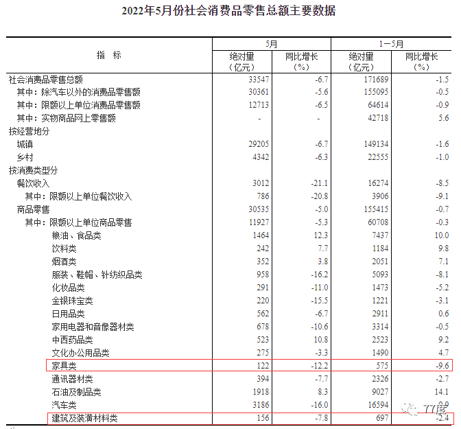 【行业信息】5月家具类零售总额大跌12.2%!