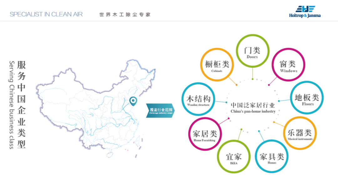 Holtrop & Jansma Environment Equipment Co., Ltd.(Qingdao) is the Chinese branch of Holtrop & JansmaHolland, and the most professional and largest manufacturer of dust removal equipment for woodworkingcompany, and also the first overseas company that set up a workshop in China. In 2009 May, Holtrop & Jansma have invested and built a workshop in the hi-tech zone of Qingdao Shandong, after this 10 years of development and build good strategic relationship, with many European companies,everywhere in China, our customers are using successfully our dust collection system.