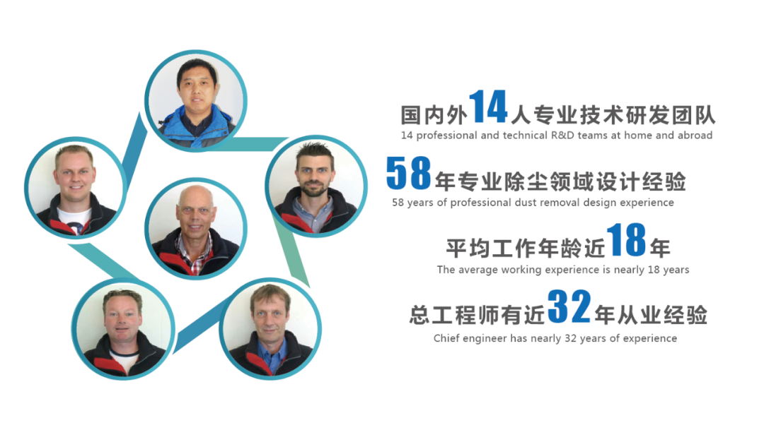 拥有50多年专业木工除尘过滤的行业服务经验;拥有超过100多名自主研发、设计、制造领域的专家;世界除尘行业前十强。