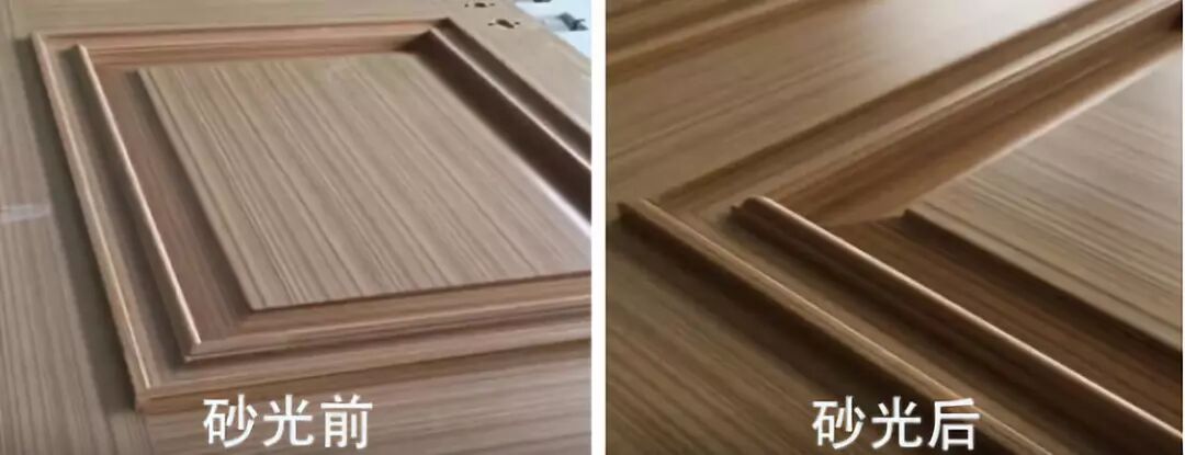 以木门为例,木门整体幅面砂光主要采用条状刷式砂轮的方式,以适应不同程度的凹凸表面,提高木门砂光的效率,木线条的砂光主要有条状刷式砂轮砂光和无纺布轮的砂光。两种砂光方式配合得当,才能保证木门整体效果的和谐统一。
