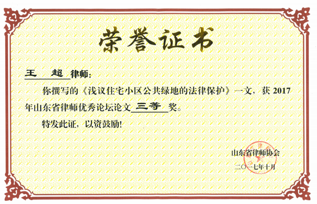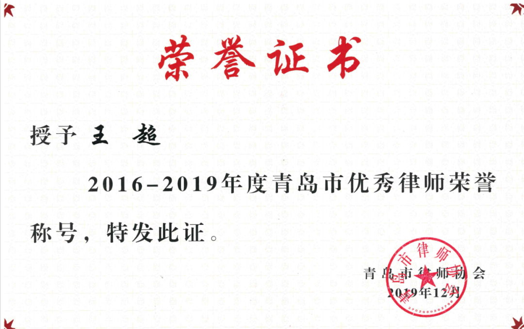 王超律师2009年取得律师执业资格,2010年加入山东众成清泰(青岛)律师事务所(全国优秀律师事务所),曾荣获2015年度青岛市司法行政系统先进个人、2016-2019年度青岛市优秀律师、连续三年获得山东省优秀律师论文奖,参与代理标的额10亿元以上的案件1件,标的额1亿元以上的案件数件,标的额1000万元以上的案件二十余件,具备在基层法院、市级中院、省级高院以及最高人民法院各个层级的诉讼服务经验,常年为青岛市财政局、建设银行青岛分行、荣华建设集团、即发集团、华润置地等行政机关、大型企业提供法律服务。
