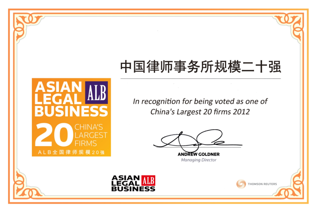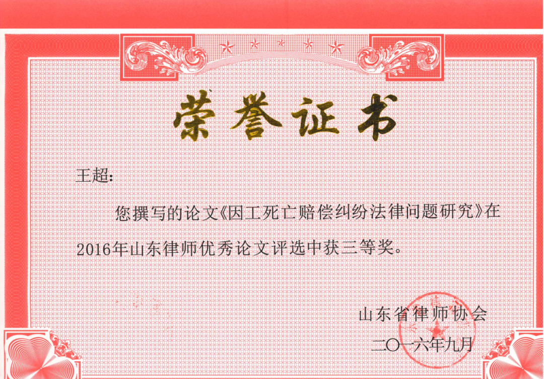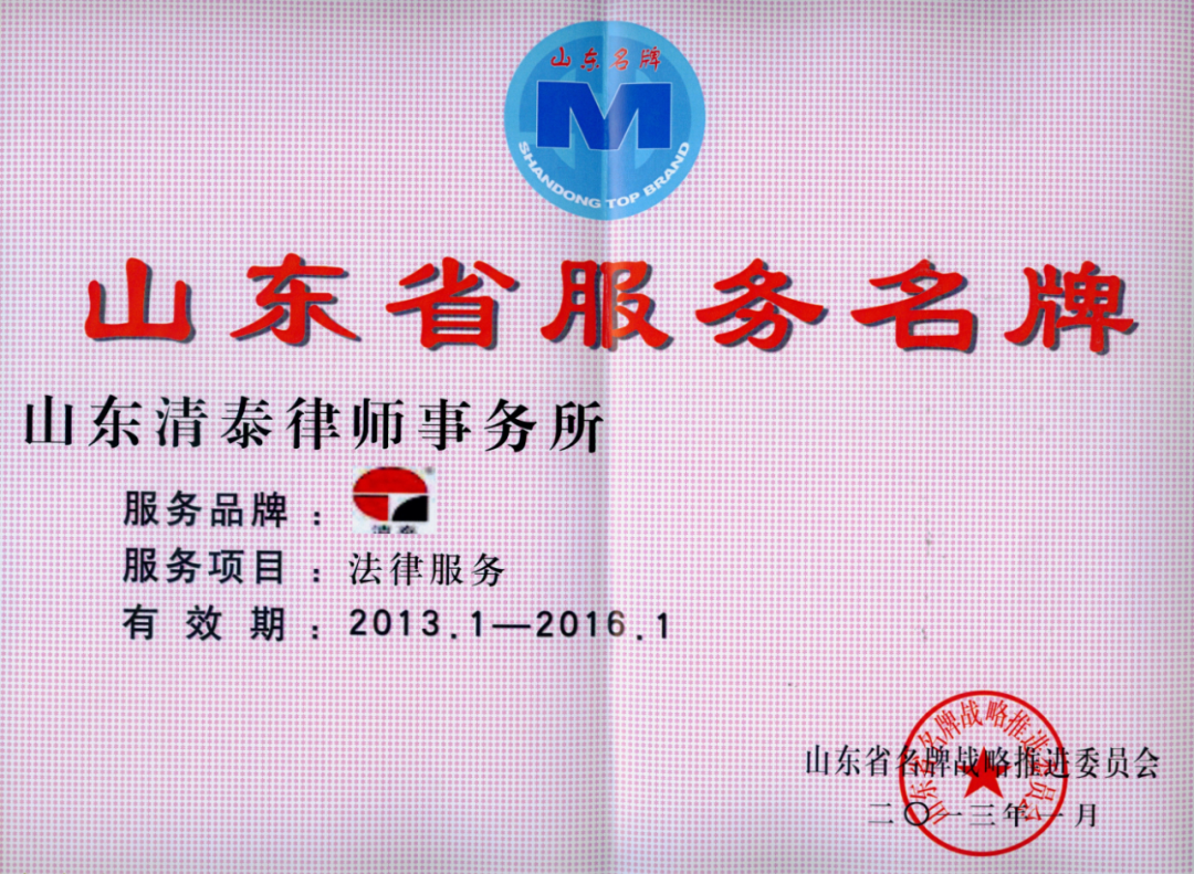 荣获全国优秀律师事务所、全国律师行业先进基层党组织、全国工人先锋号、山东省著名商标、山东省服务名牌、山东省文明单位、山东省人民满意司法行政单位、山东省诚信建设示范单位等。