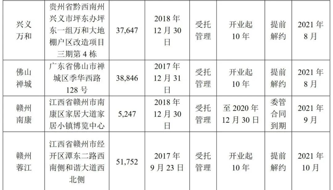 关闭14家委管商场,位于浙江舟山、浙江绍兴、辽宁大连、江苏宿迁、江西赣州、广东佛山、贵州兴义、江西新余、福建福州、江苏常熟、河北任丘、河北邯郸、湖南湘潭。