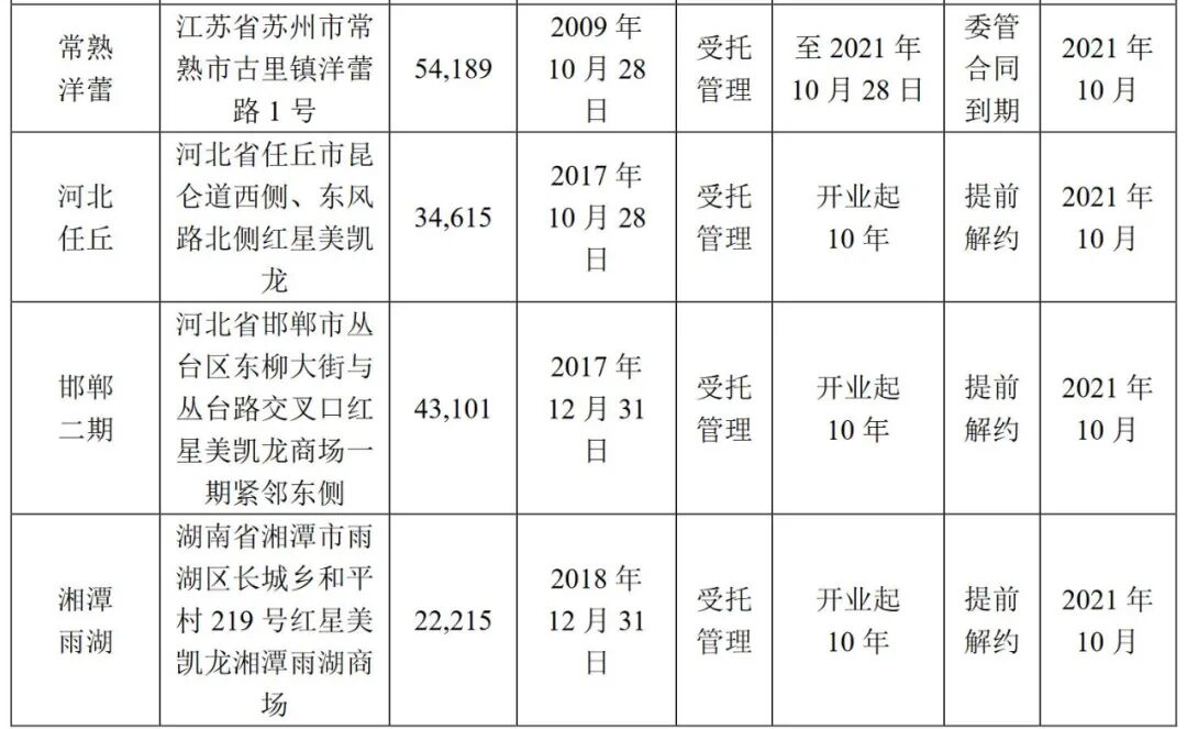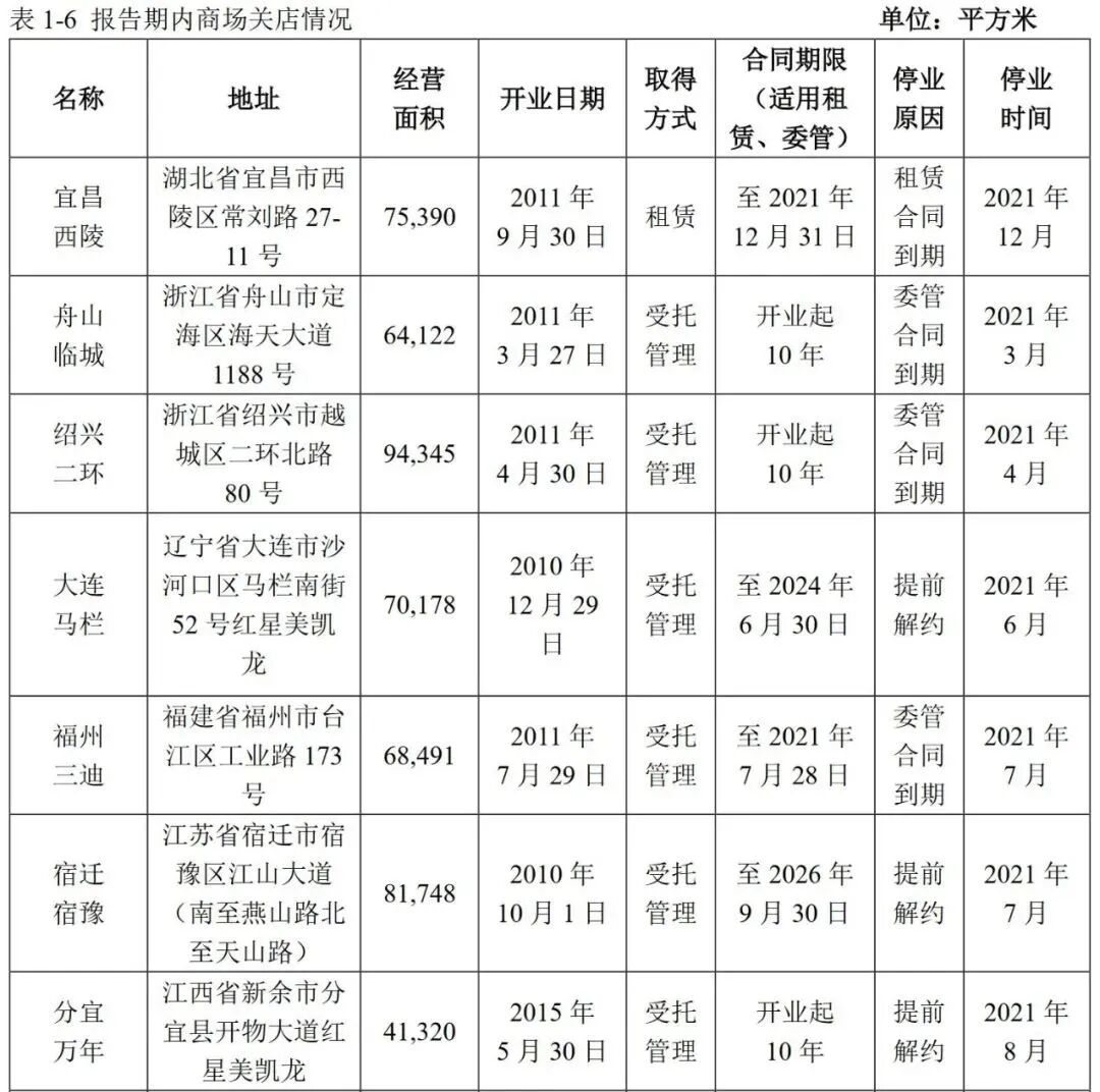年报称,关闭的15家商场中,6家系合同到期不再签约,9家为提前解约。