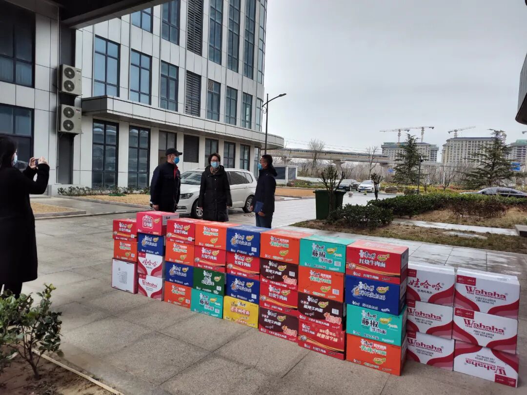 2022年3月17日上午,青岛彬圣木业有限公司为即墨区防疫隔离酒店——集格曼优选酒店的防疫人员送去了价值数千元的方便面,矿泉水,八宝粥,火腿肠等生活用品,为一线防疫人员提供牢固的后勤保障。