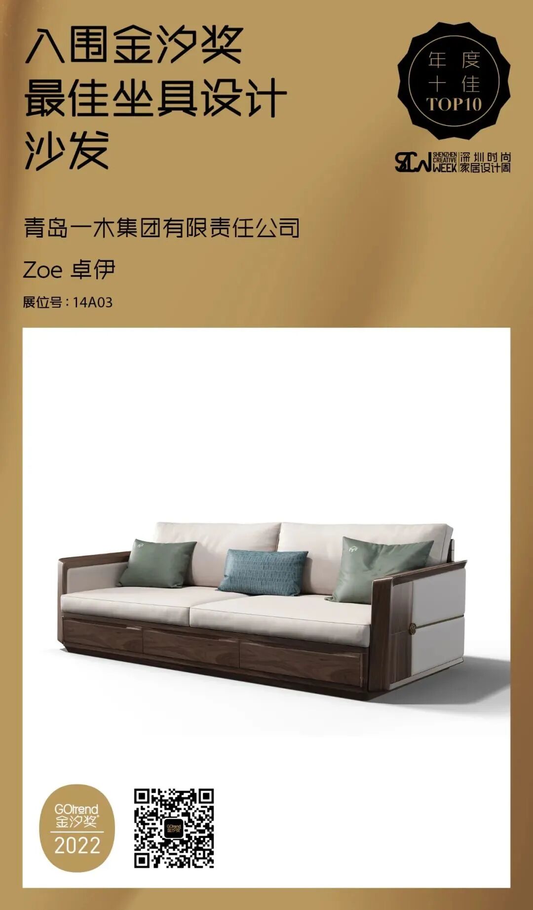 青岛一木荣膺2022年金汐奖年度十佳坐具·沙发丨奖项—青岛一木集团有限责任公司被...