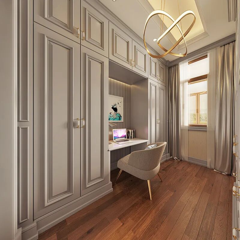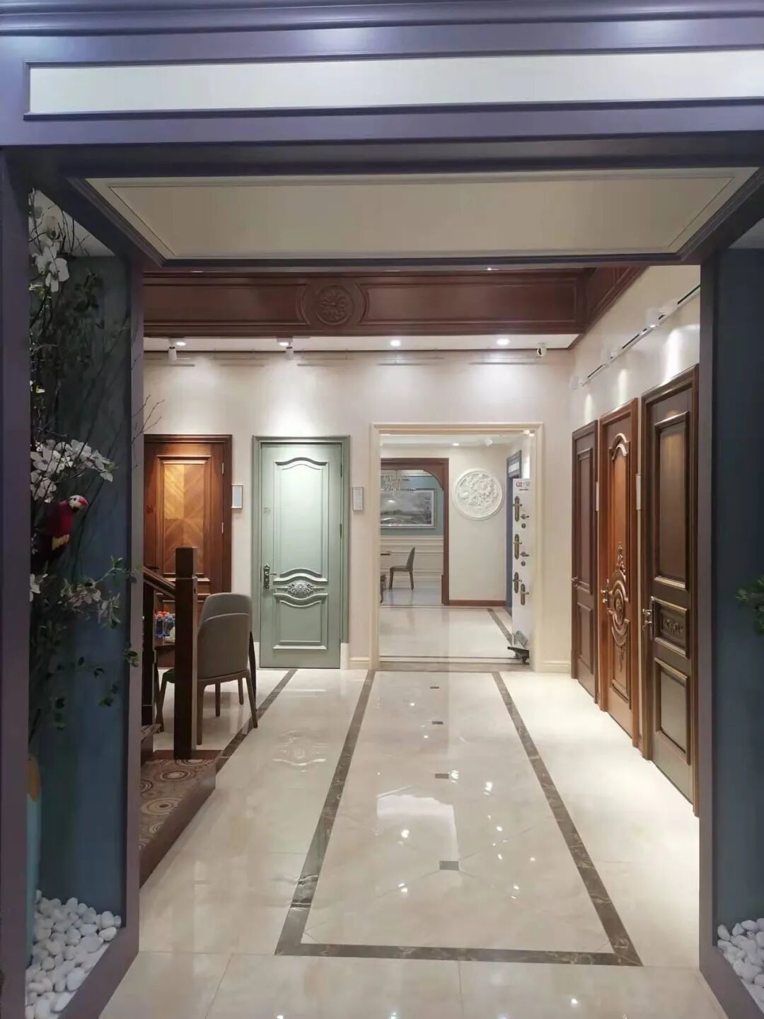 根据市场形势的发展,英派装饰转型向中高端木门、全屋定制,全屋整装方向发展,并在达翁建材家居广场设立了二层复式综合展厅,全面展示木门、护墙板、衣柜、书柜、酒柜、楼梯等全屋定制产品。
