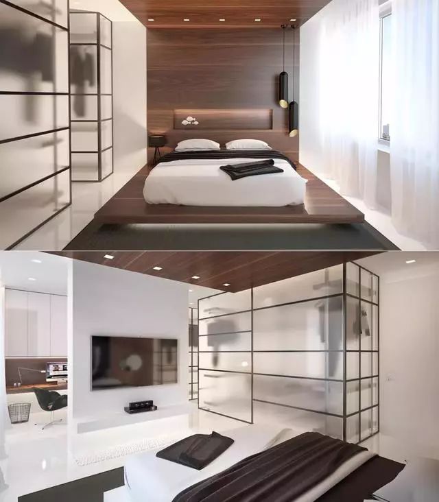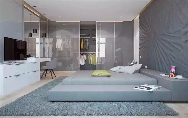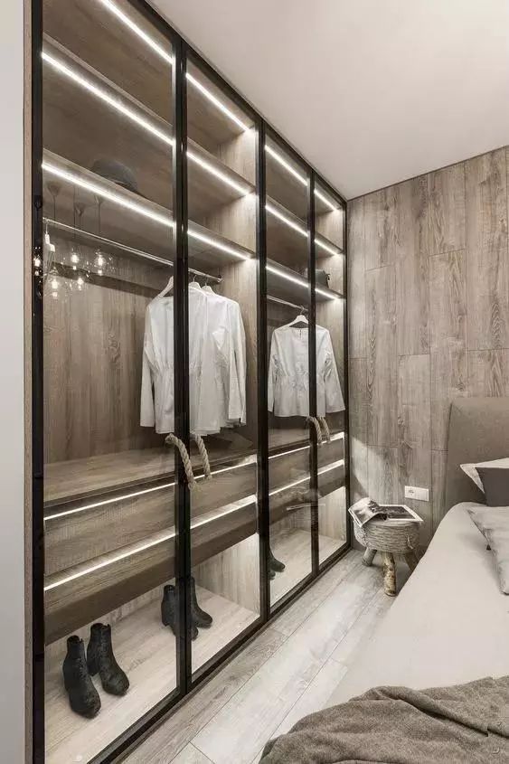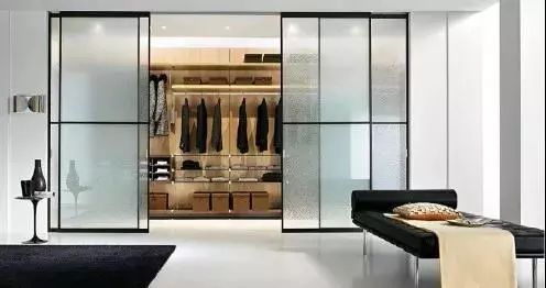 觉得透明的玻璃不具备隐私的话,可以试试磨砂玻璃衣橱,创造朦胧美的同时,让柜内空间不完全裸露。