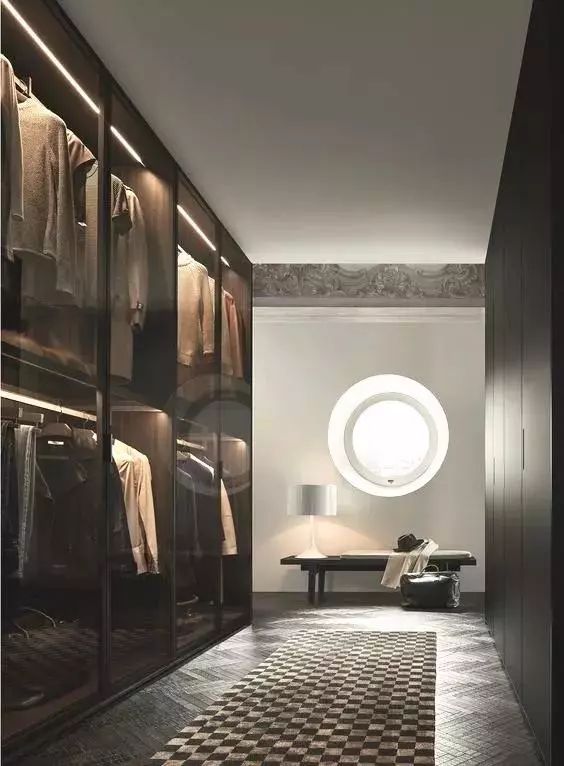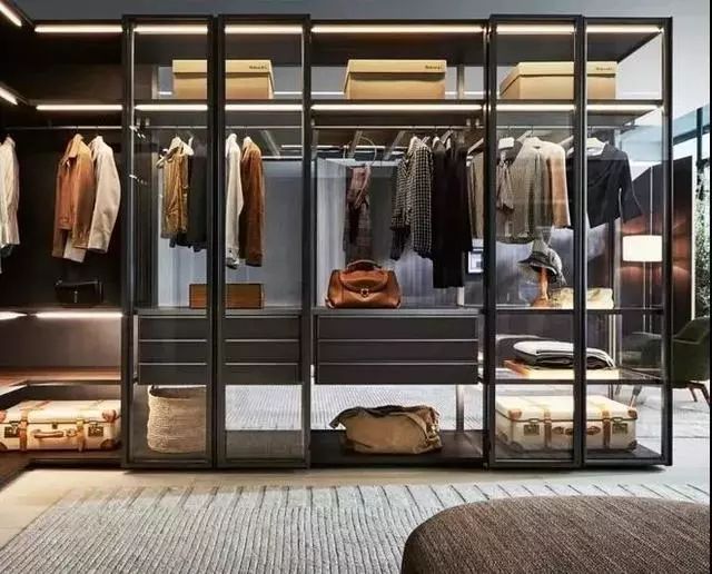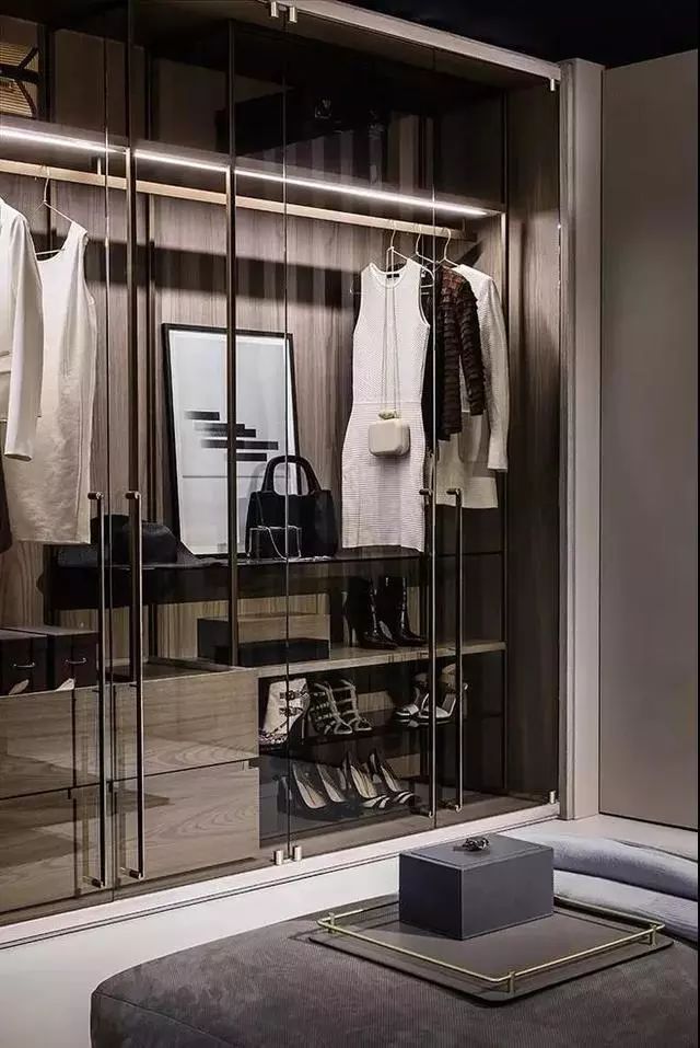 玻璃衣橱将密闭的空间打通,令所有衣物都明朗地呈现在眼前。