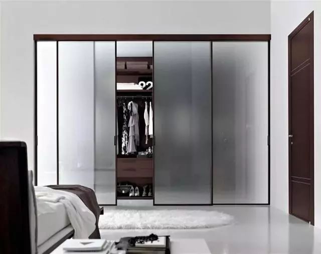 有色玻璃移门区别于透明,主要是为了增加衣柜的私密性,让衣柜的凌乱不至于过渡暴露。