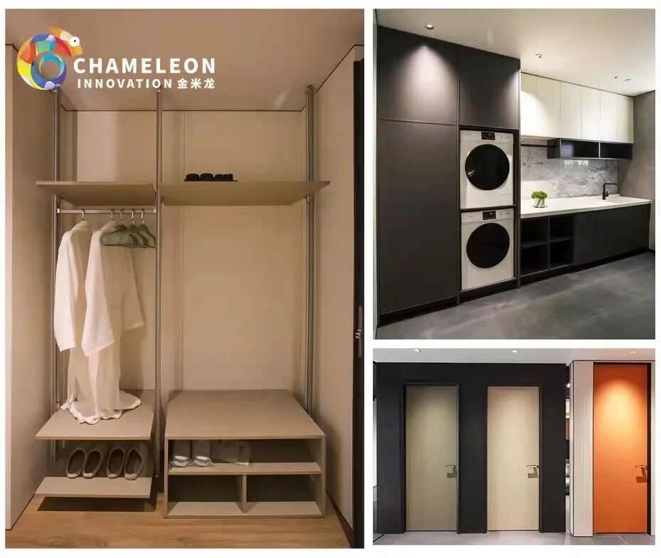 金米龙纯色肤感家具板是采用欧洲准分子工艺,结合日本f4星环保标准板材带来的4h准分子肤感板,主要服务于使用PP、PET膜并致力于产品升级的高端定制家居企业。
