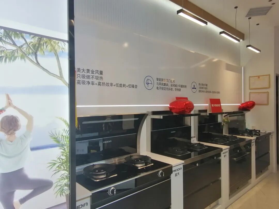 美大集成灶达翁店按照集团公司要求,以专业的产品服务,高科技含量的产品和完美的店面形象欢迎岛城顾客。