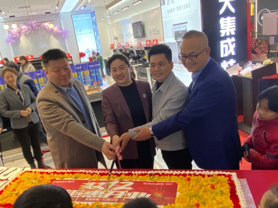 青岛达翁集团总裁、青岛家居行业协会会长戚振香女士,美大集团山东大区经理王靖云先生,青岛达翁建材家居广场总经理于金秀女士,菏泽曹州商会会长谷海先生,美大青岛营销中心经理刘金剑先生共同参加了剪彩仪式,随后领导们共同切开开业蛋糕。