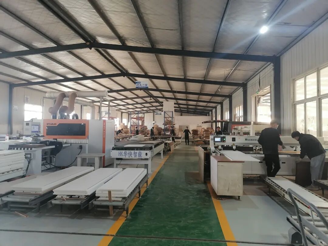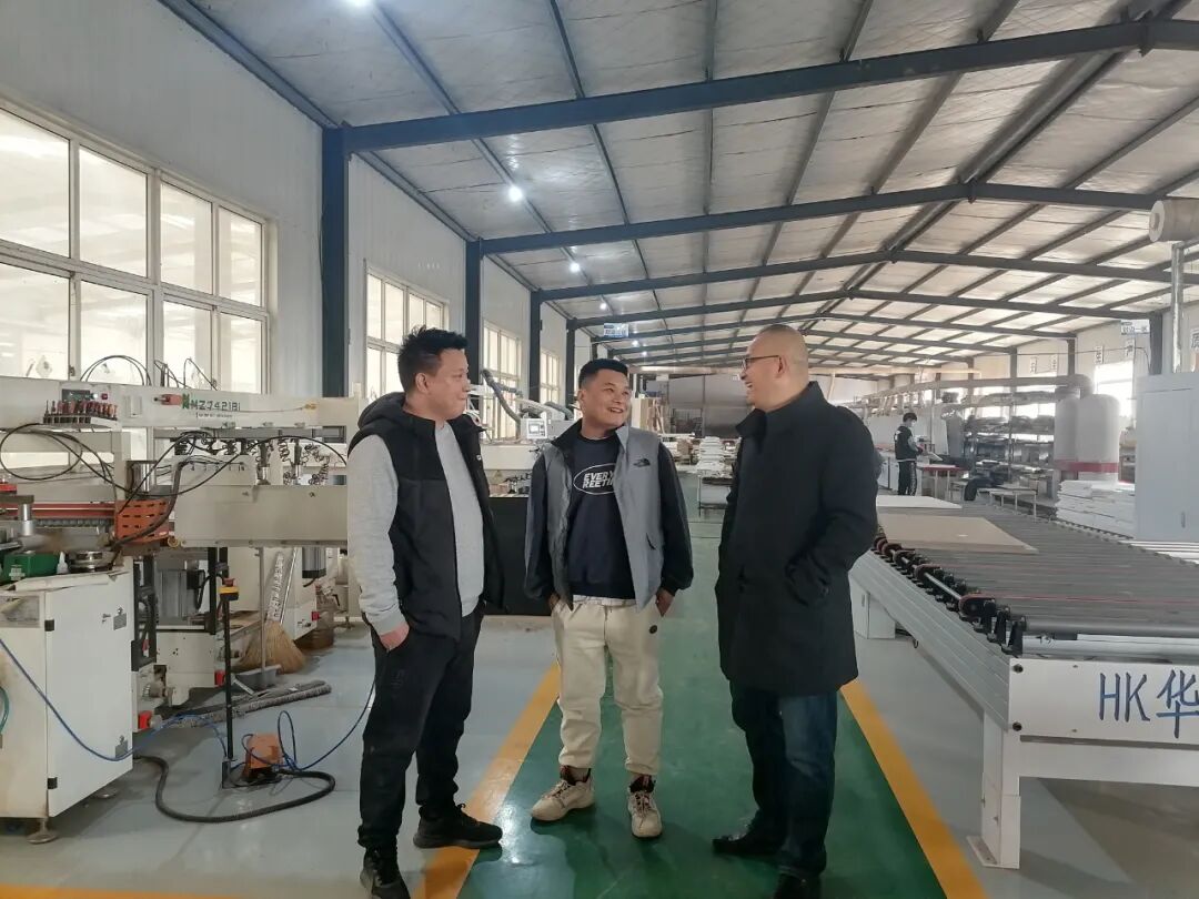 随后又参观了博美家居和迪邦宅配公司、本木亦品公司。迪邦宅配公司也引进了南兴等国内一线品牌的板式生产设备,生产井井有条。周永凑做了经营模式的具体介绍。 本木亦品公司现在根据市场需求增加了丰富的木材纹理和岩石风格等上百种花色饰面板,并在附近设立了700平米的展示交流厅,主要针对设计师和生产厂家,提供参观和交流服务,实现资源优化配置。根据政府的环保要求,这五家企业都加装了粉尘收集系统,保证了车间生产环境的清洁和规范。