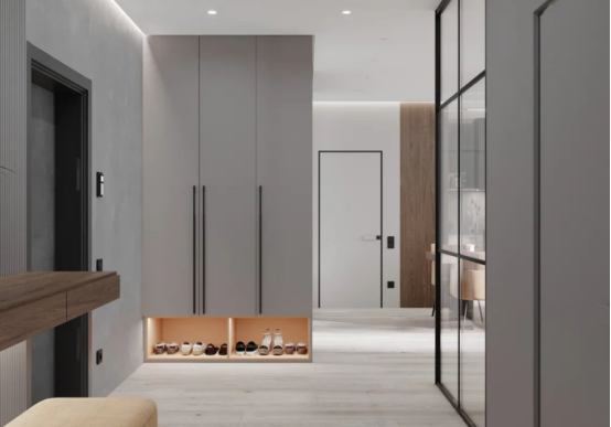 一般来说,板式家具设计主要运用在柜子,护墙板,木门等等,在实用的基础上与家居空间保持统一风格。